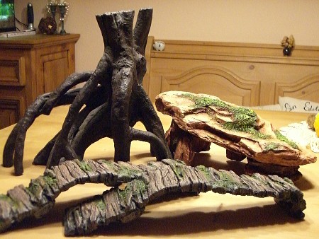 großes Paket. Sofort haben wir uns daran gemacht, den Inhalt auszupacken. Wir förderten schließlich eine große Mangrovenwurzel, 3 Terrassenelemente und