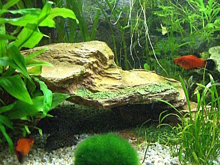 verstecken hat, haben wir ihm heute noch eine Höhle gekauft und diese anstatt seiner Burg ins Becken gestellt.