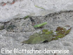 Das nächste Highlight des Tages wartete dann am Vormittag auf uns. Rosalina wanderte mit uns beiden durch den dichten Dschungel hinter der Lodge und erklärte allerlei Interessantes und Nützliches über die heimischen Pflanzen. Mehr als die Hälfte aller hier wachsenden Bäume und Pflanzen haben Heilkräfte. Rosalina behandelt sich nur mit der Kraft der Natur sagte sie und zeigte uns auch noch wie man im Urwald an Wasser kommt wenn keine Quelle in erreichbarer Nähe ist. Man müsste nur die armdicken Lianen abschneiden. Diese enthalten so viel Wasser, dass man mit dem Schwall sogar duschen könnte der dann aus der Liane fließt. Sie erklärte außerdem noch viel über Ameisen und Spinnen. Die Tucandera-Ameise ist fast 3 Zentimeter groß und richtig gefährlich. Der Biss dieser Ameise bereitet 48 Stunden Höllenschmerzen und über 40 Grad Fieber. Grusel!!!! Viele Indiostämme benutzen diese Ameise für Mannbarkeitsrituale, sprich wo die jungen Burschen zum Mann werden. Kaum vorzustellen, aber ist so.