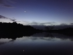 Nach dem Abendessen als es schon stockfinster war holte uns Alex zur Alligator-Spotting-Tour ab. Mit Suchscheinwerfer bewaffnet paddelten wir wieder hinein ins schwimmende Dickicht und suchten und lauschten. Ein tolles Erlebnis. Hin und wieder sahen wir die reflektierenden Augenpaare, aber als wir uns mit Kanu näherten tauchten die Tiere lieber wieder ab. Zurück auf unserer Yacht verbrachten wir noch einen lustigen Abend mit Terry und Rosalina bei einem Bierchen bevor wir uns in unsere Kabine verdrückten. Die leichten Bewegungen des Schiffes wiegten uns dann bald ins Land der Träume.