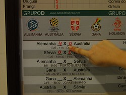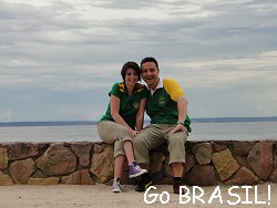 Hallo Ihr Lieben, da bin ich wieder. Heute Vormittag war mit Sonnen leider nicht so viel los. Es regnete immer mal wieder kurz. Wir verzogen uns dann in die Lobbybar. Ein Haufen Leute versammelte sich dort und es wimmelte vor Securitys wie im Ameisenhaufen. Militär, Polizei, Notarzt, es war alles da. Fernsehteams, Presseleute, wichtige Typen im Anzug und Knopf im Ohr. Als wir da so saßen und unseren Cappucino schlürften setzten sich an den Nachbartisch zwei wichtig aussehende ältere Herren. Blitzlichtgewitter ging los und die Fernsehkameras wurden gezückt. Möglicherweise sind wir morgen in irgendeiner brasilianischen Zeitung und auf einem brasilianischem Fernsehsender zu sehen. Später erfuhren wir, dass der brasilianische Präsident Lula da Silva hier im Hotel ist und wichtige Geschäfte mit Venezuela verhandelt. Wow... und wir zwei mal wieder mittendrin statt nur dabei! Jetzt kommt gleich Südafrika gegen Uruguay und alles sucht sich schon die besten Plätze aus hier in unserer Lobbybar. Draußen vorm Haus demonstriert ein Indianerstamm mit Transparenten und bunten Federn am Kopf. Leider weiß ich nicht gegen oder für was hier demonstriert wird, da ich die Transparente nicht lesen kann. Aber so Schlagwörter wie "Familia" und "Indian" konnte man schon entziffern. Morgen besuchen wir die Wasserfälle und packen dann am Abend unsere Koffer. Am Freitagfrüh um 5 Uhr werden wir abgeholt und Mamis Erdbeerkuchen rückt immer näher.