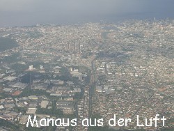 Dank der Überpünktlichkeit unseres Fahrers waren wir bereits um 5 Uhr morgens am Flughafen und kurz danach für die Maschine nach Sao Paulo eingecheckt. Wir hoben planmäßig in Manaus ab und befinden uns gerade in der Luft. Ein paar Fotos von Manaus konnte ich beim Starten ebenfalls noch machen. Da wir in die andere Richtung gestartet sind, konnten wir das Meeting of the Waters leider nicht mehr aus der Luft sehen. Mittags sind wir dann in Sao Paulo. Dann meld ich mich wieder. Bis später. Der Flug nach Sao Paulo verlief sehr ruhig und wir sind nicht über dem Brasilianischen Dschungel abgestürzt *g*. In Sao Paulo spazierten wir ein bisschen herum und vertraten uns die Füße. Um 15.30 Uhr Ortszeit begann dann auch das Boarding für die große Maschine nach München. Dank reichhaltigem Entertainment wie ja auch schon auf dem Hinflug hatte man quasi immer was zu gucken. Und wenns bloß die ewig herumkruschenden Sitznachbarn sind über die wir uns köstlich amüsiert haben. Wir fragten uns, was es wohl dauernd aus dem Handgepäck aus den Fächern über den Sitzen heraus zu holen gibt. Normalerweise hat man seine Sachen, die man braucht bei sich. Irgendwie ging der 12-stündige Flug auch wieder vorbei und so landeten wir pünktlich in München. Angesichts des schlechten Wetters (es regnete natürlich schon wieder) möchte man am nächsten Schalter doch gleich wieder einchecken und zurück in die Sonne abhauen. Aber wies halt immer so is. Daheim ist es doch immer am Schönsten. Nix desto trotz war dieser Urlaub in diesem traumhaften Land die weite Reise wert. Die Grüne Lunge der Erde zu besuchen war ein sehr beeindruckendes Erlebnis. Obwohl wir viel weniger Tiere als damals in Kenia zu Gesicht bekommen haben, sind sie dennoch da. Man kann sie überall pfeifen, quaken, rascheln, zirpen, singen und zwitschern hören. Und allein diese unzähligen verschiedenen Stimmen verbreiten eine unvergessliche Atmosphäre im Regenwald wie man sie einfach erlebt haben muss.