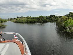 Der Ausflug gestern zum Indianerdorf war noch richtig lehrreich. Wir konnten verschiedene Tänze sehen und der Häuptling vom Dorf erklärte die rituellen Musikinstrumente. War echt interessant. Geregnet hats dann doch nicht mehr. Die dunklen Wolken lösten sich alle wieder in der heißen Luft auf. Nach dem Essen schlürften wir dann noch eine leckere Caipirinha. Terry rief unseren Private-Shuttle-Service an und wir wurden wieder stilecht mit dem Schnellboot abgeholt und zur Captain Logan gebracht. Die hat auf Grund des besseren Satellitenempfangs wegen der beginnenden Fußball-WM den Ankerplatz gewechselt und lag nun auf der anderen Seite des Flussarms. Auf dem Upper-Deck zischten wir mit Terry noch ein kühles Bierchen bevor wir unter dem Kreuz des Südens sanft entschlummerten.