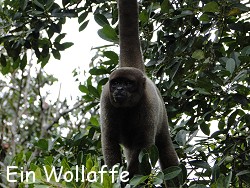 Wir aßen zu Mittag und Rosalina erklärte den weiteren Ablauf. Ein Besuch auf der Affeninsel und Piranha-Angeln stand noch auf dem Programm. Zusammen mit einem anderen deutschen Pärchen tuckerten wir am Nachmittag mit dem Kanu hinüber zur Affeninsel. Rosalina erklärte uns, dass dort zahme Affen die vorhin bei Menschen lebten wieder langsam ausgewildert werden. Wir durften zusehen wie die Wollaffen, so der richtige Name frisches Obst zu fressen bekamen. Anschließend gings dann mit dem Kanu hinein ins Dickicht des schwimmenden Waldes. An einem ruhigen Plätzchen warfen wir unsere Angeln aus. Rosalina schnibbelte kleine Fleischstückchen als Köder die wir dann an unsere Haken spießten. Leider hatten wir aber kein Glück. Kein Piranha oder Wels wollte anbeißen. Aber spannend wars trotzdem, denn irgendwas zupfte und knabberte immer an den Ködern, so dass die Angelschnur zu zucken anfing.