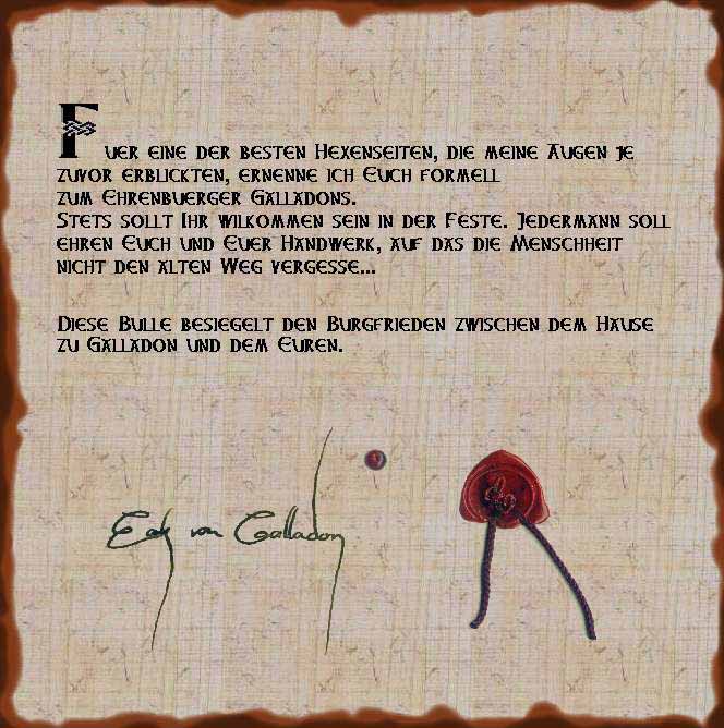 Am 25. Tage im Ostermond 2002 A.D. wurde ich von Eak Von Galladon zum Ehrenbürger in