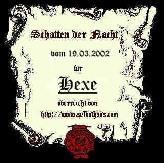 seine "Goldene Hexe" die ich ihm für seine tolle Seite verliehen habe. Ich hab mich
