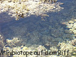 weiter zum nächsten Riff. Auf diesem kann man bei Ebbe herumlaufen. In den tieferen Senken, dort wo sich das Wasser am längsten hält