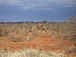 den roten Sand rumpelten stand auf einmal ein großer Elefantenbulle am Wegesrand. Dieser hat sich wahrscheinlich genauso erschreckt wie wir