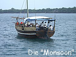vor Anker lag. Auf der "Monsoon" nahmen wir alle auf den gepolsterten Sitzflächen Platz. Die Mannschaft stellte sich vor und erklärte