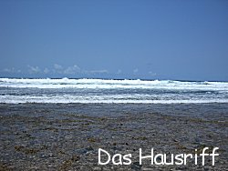 Dabei kann man bei Ebbe richtig weit zu den Korallenriffen spazieren, die der Landmasse vorgelagert sind. Morgen wollen wir dennoch