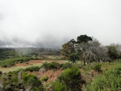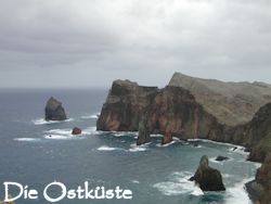 Es ist wohl ein ungeschriebenes Gesetz, dass ein Tag in unseren Urlauben immer Scheiße sein muss. Im Oman wars damals gleich der erste, als uns die Karre verreckte und eine neue Batterie brauchte, in Island schiffte es an einem Tag ununterbrochen wie aus Kübeln und in Kanada vergaßen wir einmal unsere Speicherkarte für die Kamera im Hotel und mussten wieder umdrehen um sie zu holen. Ja und heute war wieder so ein Tag. Dabei fing er voll super an. Wir wollten heute durch den Lorbeerwald zu einem Kratersee wandern. Bis zur Hochebene Paul da Serra war bestes Wetter, Sonnenschein und ein nur leicht bewölkter Himmel. Am Horizont konnten wir jedoch schon die dicke Wolkenwalze ausmachen, die bereits die ersten Windkraftwerke verschluckte. Unglücklicherweise lag der Lorbeerwald genau in dieser Richtung. Ehe es wir uns versahen war die Wolkenwalze heran und saugte uns förmlich ein. Von jetzt auf gleich fiel die Temperatur um mehrere Grad, es fing zu nieseln an und es wehte ein kalter Wind. Stellenweise konnte man kaum bis vor die Motorhaube gucken. Wir fuhren im Schritttempo um die engen Kurven, denn auch hier oben streifen die Kühe wild umher. Und so wars dann auch. Eine Herde von ca. 15 Rindviechern bummelte gemütlich auf der Straße herum. Nur durch mehrmaliges energisches Hupen machten sie uns Platz. Natürlich sind wir dann auch noch mangels Sicht und Orientierung am Parkplatz vorbeigefahren. Also im Blindflug mitten auf der Straße umdrehen und wieder zurück. Das graue Forsthaus an dem die Tour losgehen sollte, tauchte erst nach einigen Schritten aus dem dichten Nebel auf. Der Lorbeerwald sah allerdings gigantisch aus bei diesem Wetter. Unheimlich und ein wenig gruselig standen die altehrwürdigen Bäume im Nebelschleier. Den Lorbeerwald gibt es nur noch hier auf Madeira. Und auch da muss er langsam den Windkraftanlagen und Sonnenkollektorenfeldern weichen. Die Bäume sind mehrere hundert Jahre alt und haben mächtige Stämme. Von den armdicken Ästen hängen Flechten und Farne herunter. Wir gingen ein paar Meter, aber als uns erneut eine Ladung Sprühregen ins Gesicht klatschte, entschieden wir hier und jetzt abzubrechen. Ein Alternativprogramm musste her. Wir wälzten kurz unsere Wanderführer und einigten uns auf die Tour, die hinaus auf den östlichen Zipfel Madeiras führt. Nach einer knappen Stunde Autofahrt quer über die Insel war die Halbinsel erreicht. Die kleinen Palmen und Büsche die am Straßenrand standen bogen sich weit in Richtung Boden und das verhieß nix Gutes. Der Parkplatz war ebenfalls schon rappelvoll und als wir ausstiegen fegte uns der Sturm schier die Schuppen aus den Haaren. Die Wolken hingen auch hier grau am Himmel und es windete so stark, dass man kaum atmen konnte. Die Tour konnten wir quasi auch vergessen, denn an den Klippen entlang bei diesem Wind ist ja lebensgefährlich. Wir sind nur kurz an einen Aussichtspunkt gefahren um ein paar Fotos von der zerklüfteten Ostküste zu machen. Jeder Schritt fiel schwer. Einen dritten Versuch wollten wir dann nicht mehr wagen und sind dann auf dem schnellsten Wege über die Autobahn nach Hause gefahren. Mit jedem Kilometer mehr in den Süden bekamen die Wolken immer mehr Löcher und rissen auseinander. Hinter Funchal war es schon wieder angenehm warm und bei uns daheim in Ponto da Sol waren es nur noch kleine weiße Wölkchen die den blauen Himmel über uns schmückten. Eine leichte Brise wehte vom Meer her und es hatte 24 Grad. Das Zentralgebirge ist echt sowas wie eine Wetterscheide. Im Norden stauen sich die Wolken an den Bergen und regnen sich dort ab. Im Süden haben sie dann jegliche Kraft verloren und treiben hinaus aufs Meer. Meist kommen sie jedoch nicht soweit, da die warme Luft sie vorher auseinandernimmt. Kurios. Daheim wurde Rucksack und Wanderzeugs ins Zimmer geschmissen und wir zogen nochmal los. Wir bummelten durch den kleinen Ort und kauften uns zum Trost noch ein Eis. Den Rest vom Nachmittag verbrachten wir wieder am Strand im Café. War trotzdem noch ganz lustig. Vor allem wenn man die Leute so beobachtet wie sie mit Pommes und Brot die Tauben anfüttern. Flattert dann der ganze Schwarm hitchcock-mässig auf den Tisch um die Teller zu plündern geraten sie in Panik und fuchteln wie wild mit den Armen herum. Schon witzig. Morgen wollen wir erneut einen Versuch mit dem Lorbeerwald wagen, allerdings dann erst am Nachmittag. Also so sieht der Plan aus. Vormittags machen wir noch eine andere Tour und dann starten wir nochmal los. Versuch macht klug, heißts ja. Wer nicht wagt der nicht gewinnt. Wir werdens sehen. Also dann, bis morgen ihr Lieben.