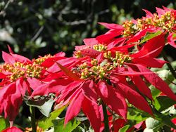 Beim morgendlichen Blick aus dem Fenster versprach dieser Tag ein herrlich sonniger Herbsttag zu werden. Wobei Herbst hier nicht ganz so zutrifft. Jedenfalls nicht so wie bei uns mit Schmuddelwetter und einem Himmel in allen Farbschattierungen von grau. Nach dem Frühstück um kurz nach neun machten wir uns auf den Weg Richtung Paul da Serra. Das ist eine Hochebene auf 1350 m. Trotz anfänglicher kleiner Probleme mit der Karte fanden wir ganz gut an unser Ziel. Die Cristo Rei Statue. Diese Statue ist weithin sichtbar und zeigt den Christus mit gütig offenen Armen wie zur Begrüßung ausgestreckt. Von dort startete unsere erste Wanderung entlang einer Levada. Die Levadas sind das portugiesische Pendant zu den Südtiroler Waalwegen. Uralte, in den Fels geschlagene Bewässerungskanäle die das Wasser aus den Bergen an die fruchtbaren Felder und Hänge der Südküste leiten. Wir wanderten immer an der Levada entlang. Das ging ganz bequem. Nur ab und zu musste man ein kleines Mäuerchen entlangbalancieren. Dort oben pfiff ganz schön der Wind. Die steifen Böen trieben die Wolken in rasanter Geschwindigkeit über den Berg. Ab und zu fielen kleine Tropfen heraus die sich dann wie Sprühnebel verteilten. Der Weg führte durch karges Bergland nur ab und zu blühte gelb der Ginster. Dafür haben wir viele Kühe gesehen. Denn hier oben ist frisches Weideland für Kühe, Esel, Ziegen und Schafe. Die Kühe lagen teilweise mitten im Weg und bewegten sich nur durch gutes Zureden von der Stelle. Die Rindviecher sind hier auf Madeira viel kleiner wie bei uns daheim. Dafür haben sie langes Winterfell und lustige Ponyfransen auf dem Kopf. Irgendwann kreuzte der Levadaweg eine Teerstraße. Man hätte hier noch ewig weiterlaufen können. Wir sind jedoch nach einer kurzen Pause auf dem gleichen Weg wieder zurück gewandert. Mittlerweile ließ der kalte Wind auch nach und es wurde richtig schön warm. Zurück am Auto waren wir aber dann doch ein wenig kaputt. Den Rest des Nachmittags verbrachten wir ganz gemütlich im Hotel und ruhten uns aus. Was wir morgen unternehmen wissen wir noch nicht genau. Ich würde gerne ein paar Blümchen sehen. Als wir heute vom Berg wieder zurück gefahren sind, entdeckte ich in einem Vorgarten einen Busch der wie unser Weihnachtsstern aussieht, den man mittlerweile in den Gärtnereien kaufen kann. Cool, dass der hier in Büschen wächst und daheim wird das hoch- und überzüchtete Gewächs in allen Farben zum Verkauf angeboten. Bin echt neugierig was wir hier noch alles entdecken. Für heute mach ich Schluss. Bin ziemlich erledigt und hau mich jetzt erst mal hin. Na dann, bis morgen.